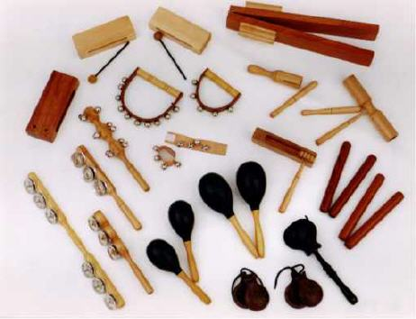 convencionales como MARACAS, BONGOS, CLAVES, CARRACAS, CASCABELES,