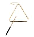 El triángulo se toca golpeándolo con una pequeña varilla metálica para conseguir una nota aguda y penetrante. También podemos obtener